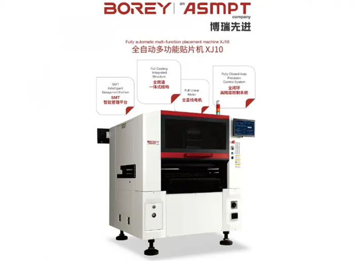 The perfect combination of Borui‘s advanced fully automatic surface mount machine XJ10 and SMT intelligent platform is committed to providing customers with high stability, high precision, high efficiency, and cost-effective products and whole line solutions. The XJ10 integrates an integrated casting structure, fully linear motor drive, fully linear closed-loop control system, high-speed and lightweight HM mounting head, and is equipped with a dual recognition system of a flying camera and a multifunctional camera to achieve precise mounting of 0201. It can be applied to various electronic mounting fields to meet the needs of different customers.