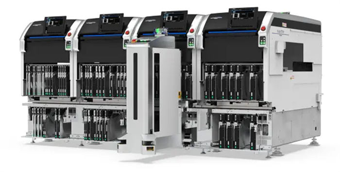 FUJI‘s NXTR A model achieves automatic replacement and replenishment of feeders through intelligent loading vehicles, supporting multi variety mixed production and continuous feeding, significantly reducing line changing time and manual intervention. Its modular design allows for free combination of 1R/2R modules, equipped with lightweight working heads for quick replacement, and can expand production capacity as needed. The mounting accuracy reaches ± 15 μ m (high-precision mode), equipped with dynamic height compensation function to cope with circuit board warping, integrated MPI mounting confirmation, IPS component detection, 3D coplanarity detection and other multiple quality guarantees. The new working head supports a wide range of components from 0201 to 200 × 150mm, coupled with dual robotic arms at a top mounting speed of 120000 cph. The single track can handle large circuit boards of 750 × 610mm.