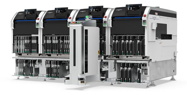 FUJI的NXTR A机型通过智能加载车实现供料器自动更换与补料,支持多品种混线生产与连续供料,显著减少换线时间与人工干预。其模块化设计允许自由组合 1R/2R 模组,搭载轻量工作头实现快速更换,并可按需扩展产能。贴装精度达 ±15μm(高精度模式),配备动态高度补偿功能应对电路板翘曲,集成 MPI 贴装确认、IPS 元件检测、3D共面性检测等多重品质保障。新型工作头支持 0201 至200×150mm 超宽元件范围,配合双机械手120,000cph 顶级贴装速度,单轨可处理 750×610mm 大型电路板。
